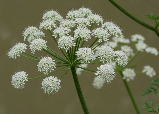동아시아와 북아메리카에 지역에 서식하고 있습니다. 최대 2m까지 자라며 자주색 점이 박힌 줄기는 속이 비어있습니다. 잎의 가장자리는 톱니 모양이며 깃꼴로 갈라지며 작은 흰꽃은 위로 갈수록 많이 모여서 핍니다. 꽃잎과 수술은 각각 5개이고, 씨방은 밑쪽에 2실이 있습니다. 뿌리는 흰색이며 초지나 황무지에서 서식합니다. 열매는 건과이고 편평한 달걀모양입니다. 냄새가 아주 고약합니다. 이 식물에는 알칼로이드가 들어있는데, 이것은 독성 물질로 중추 신경과 운동신경을 마비시키고 호흡을 멈추게 하여 서서히 생명을 죽게 합니다.