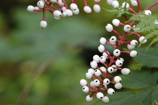 노루삼속의 식물이며, 열매에는 독성이 있습니다. 높이는 30~60cm까지 자라면 대부분 숲에서 서식하고 있습니다. 잎사귀가 작고 모여 달려있으며 줄기 끝에는 작은 흰색꽃이 모여 핍니다. 흰색, 검은색 열매를 맺습니다. 먹을 경우엔느 현기증과 구토를 유발하고, 체내에 염증을 발생시킵니다.