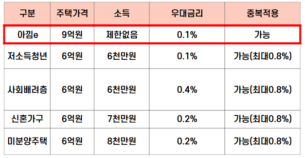 - 주택가격 9억원 이하